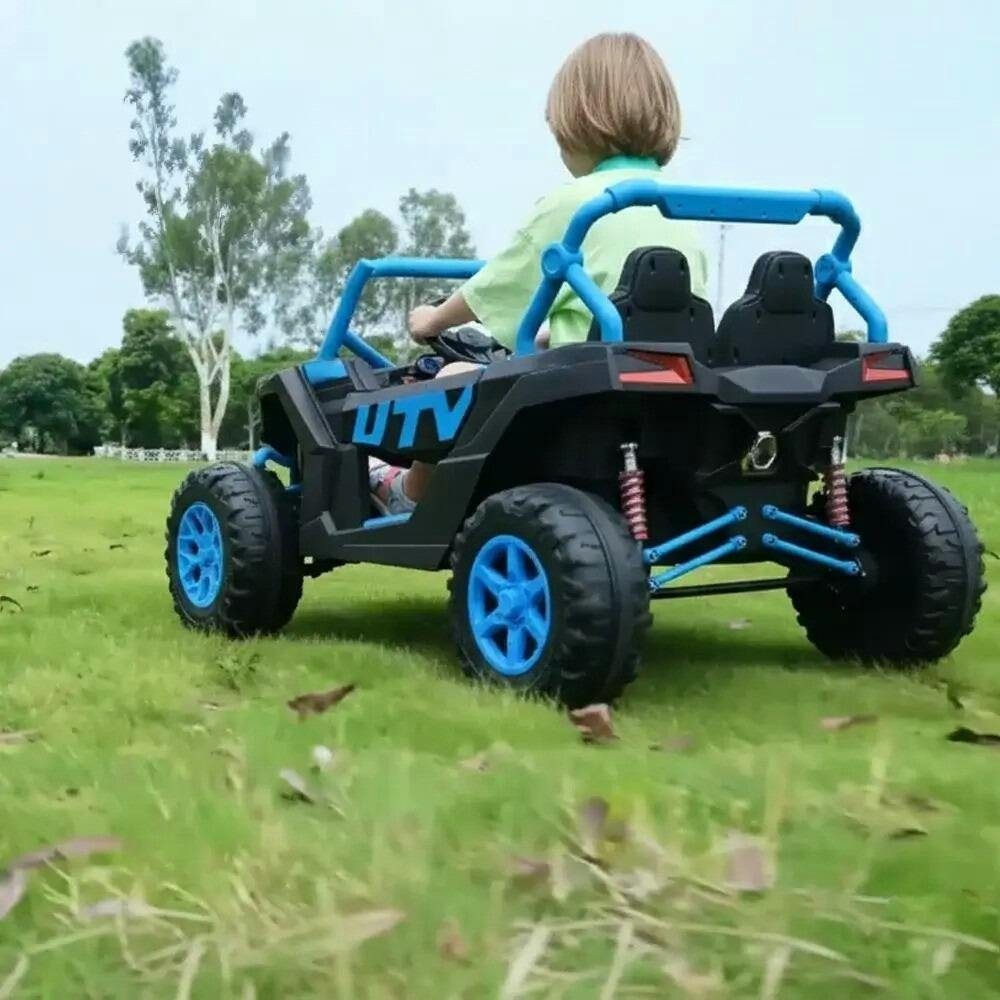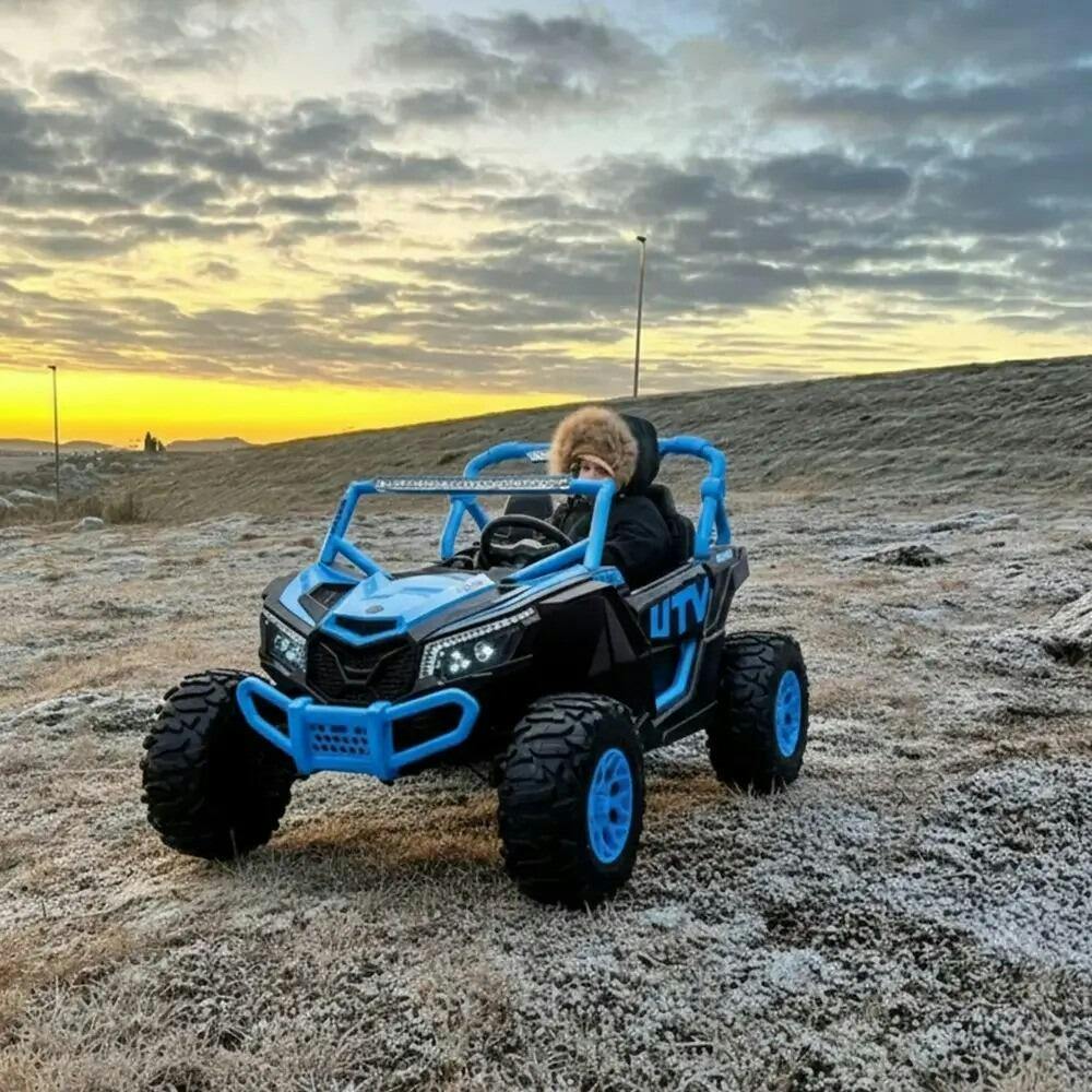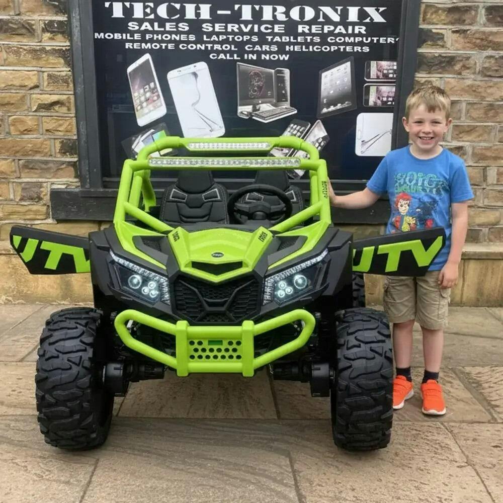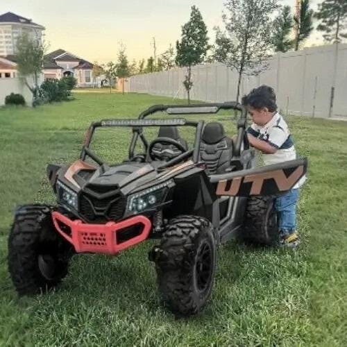 This thing has a great battery life, but also can go pretty quick! My daughter was gifted this from a friend when she turned 7 and I was certain shed be too big (although shes tall, shes petite) and this fits her perfectly. She even has space for my almost 4 year old to sit with her comfortably.There are two speeds, a switch for 2x2, 4x4 and music. Shes even got a switch for lights! The lights arent crazy bright but a cool effect, and also helpful for nighttime and others to see us on the move.Ive charged it maybe 3-4 times in 2 months, and we go on 1.5 mile walks about 4x a week.