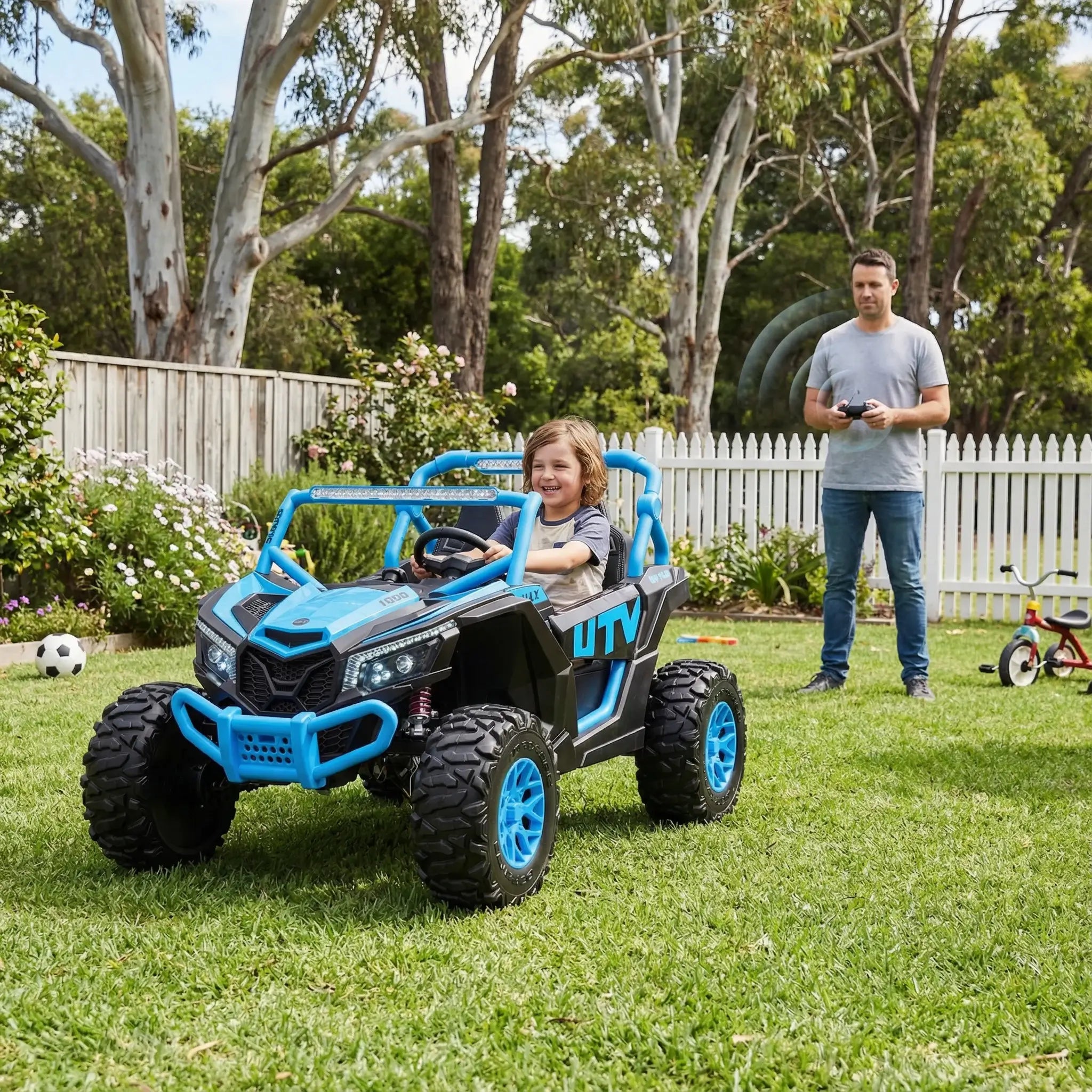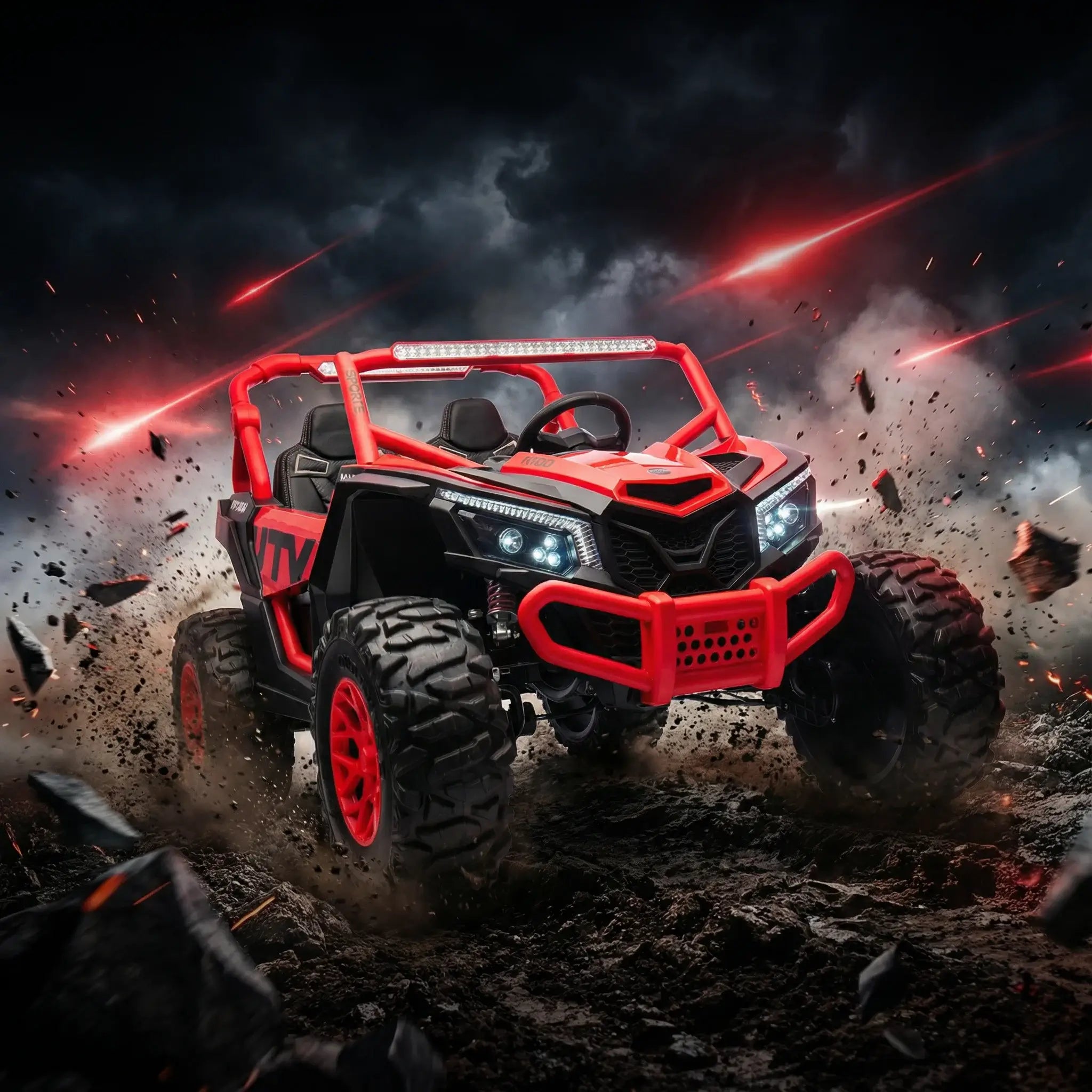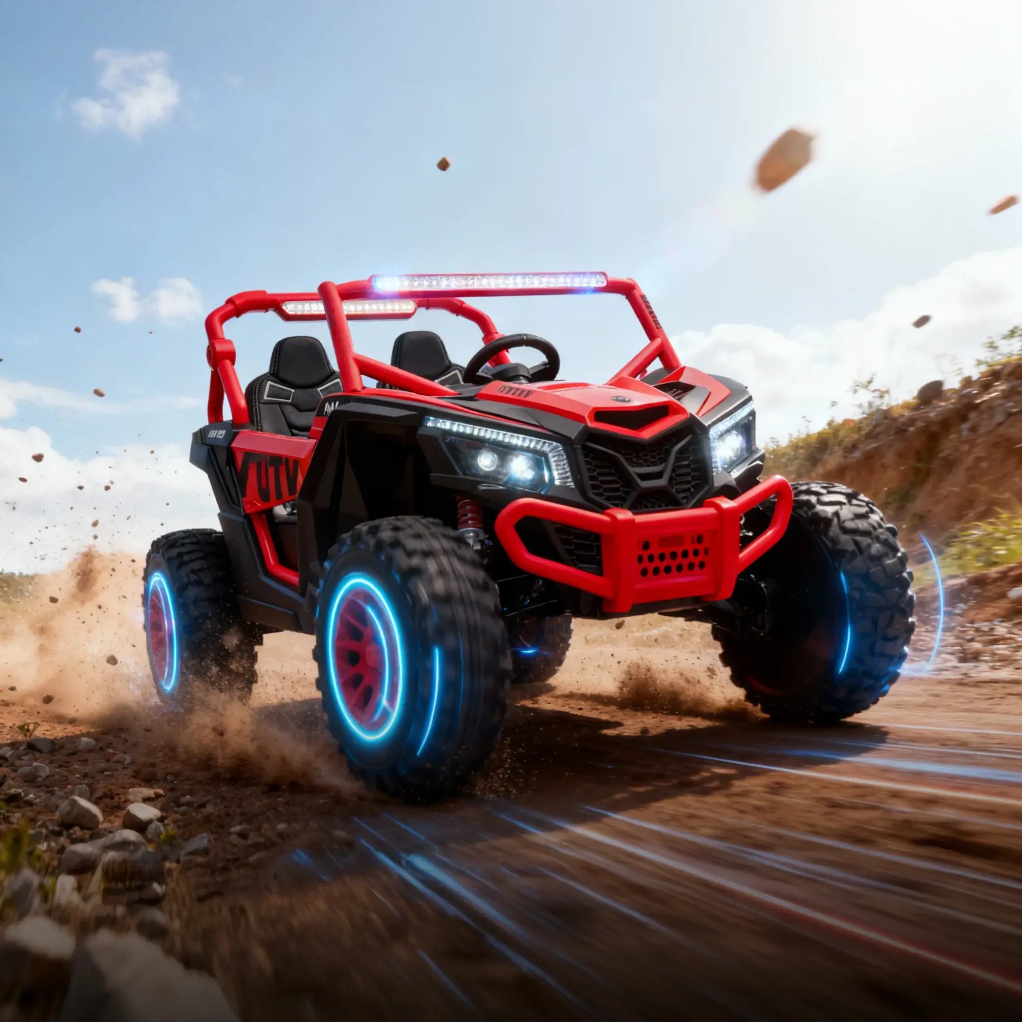 This thing has a great battery life, but also can go pretty quick! My daughter was gifted this from a friend when she turned 7 and I was certain shed be too big (although shes tall, shes petite) and this fits her perfectly. She even has space for my almost 4 year old to sit with her comfortably.There are two speeds, a switch for 2x2, 4x4 and music. Shes even got a switch for lights! The lights arent crazy bright but a cool effect, and also helpful for nighttime and others to see us on the move.Ive charged it maybe 3-4 times in 2 months, and we go on 1.5 mile walks about 4x a week.
